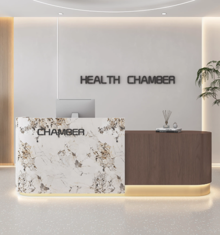 Salón de belleza pintado Clínica Recepción Centro de yoga Empresa Recepción Mostrador de pago